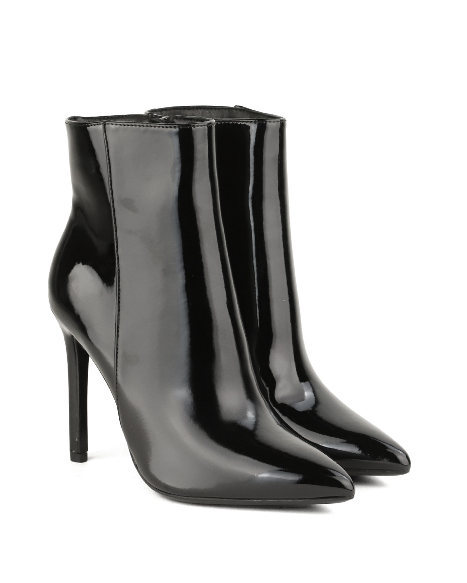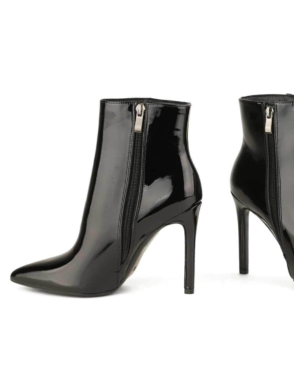 Μποτάκι Μυτερό με Τακούνι – Μαύρο Λουστρίνι