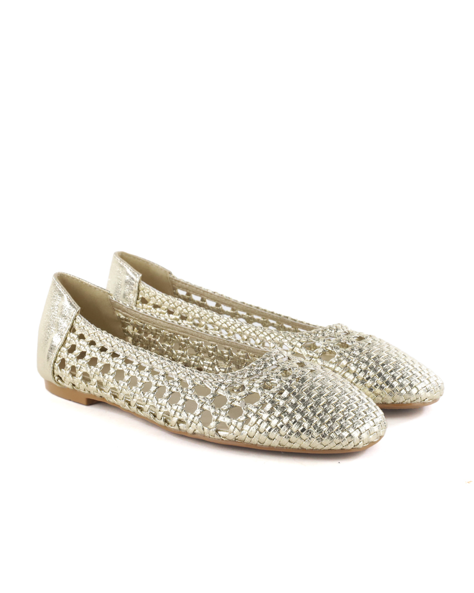 Γοβάκια Flat με Πλεκτό Σχέδιο – Χρυσό