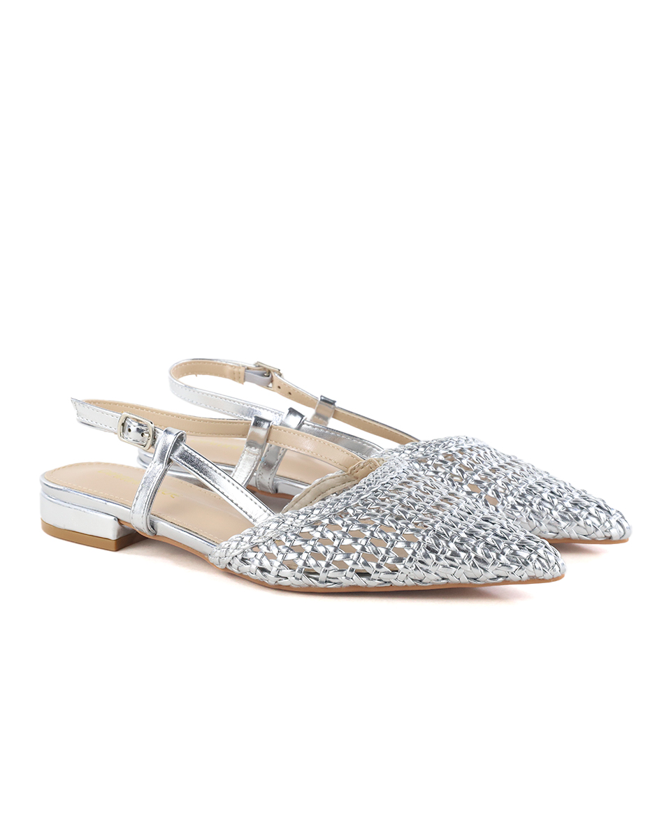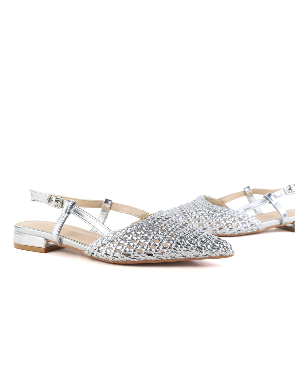 Γοβάκια Slingback Μυτερά με Πλεκτό Σχέδιο – Ασημί