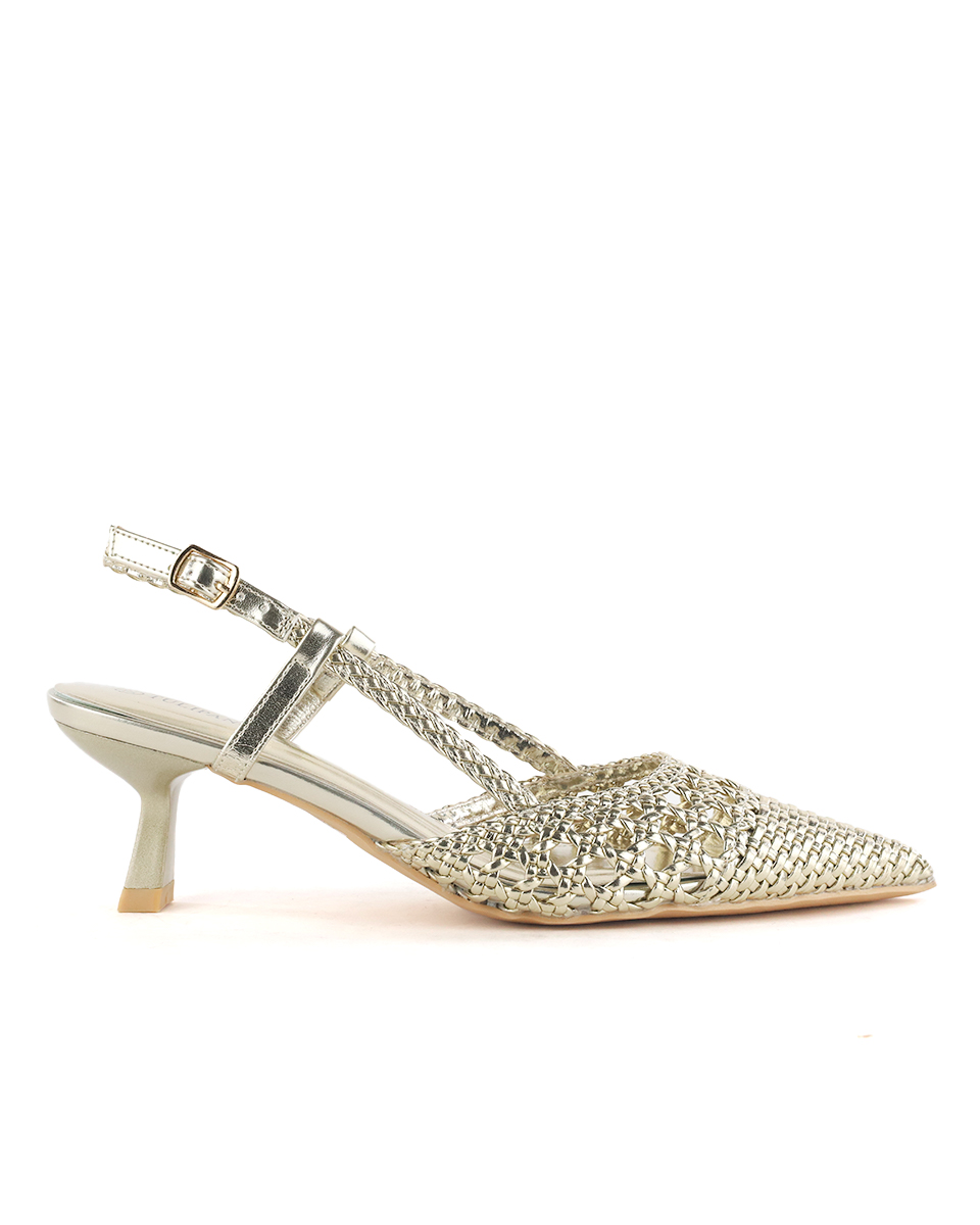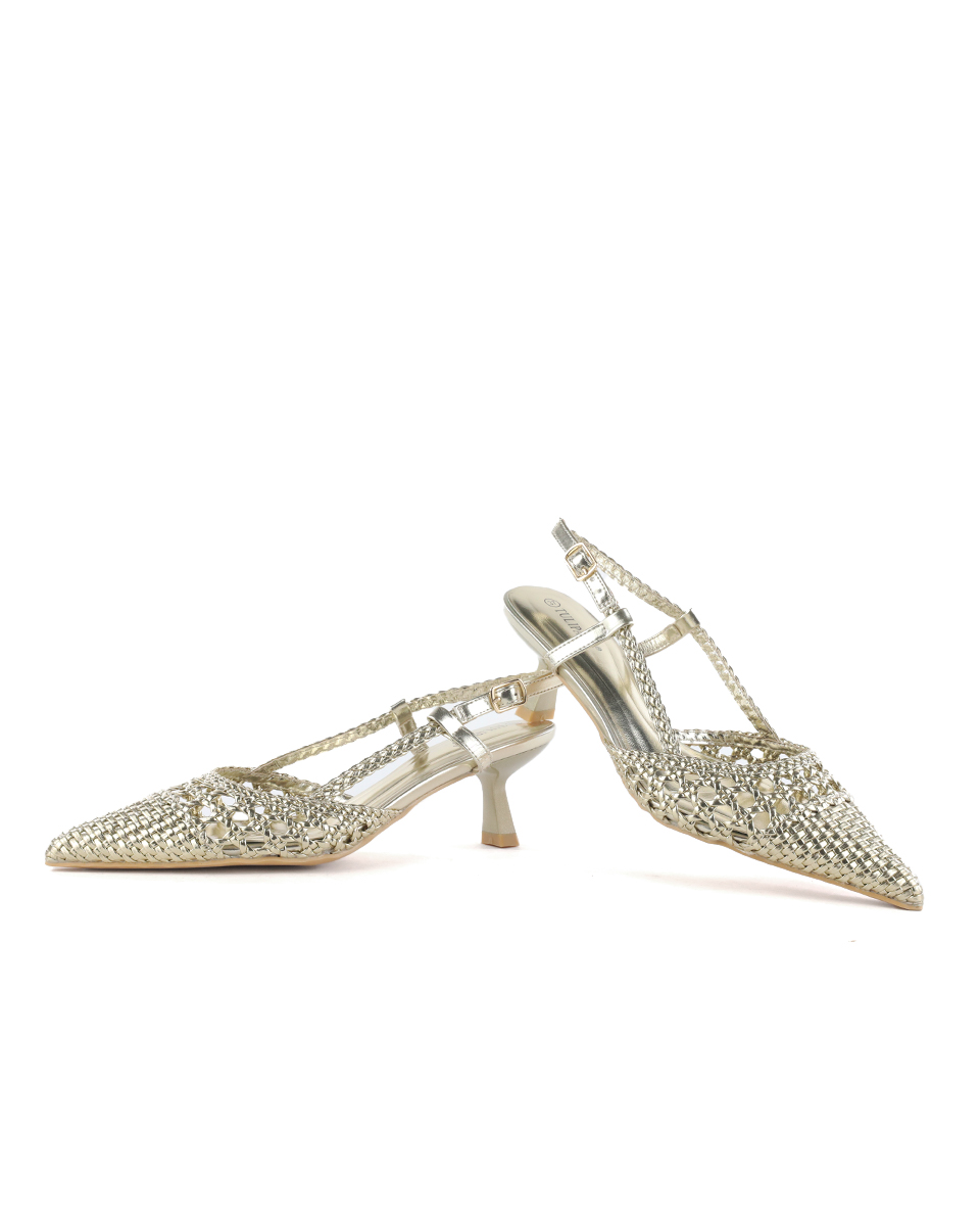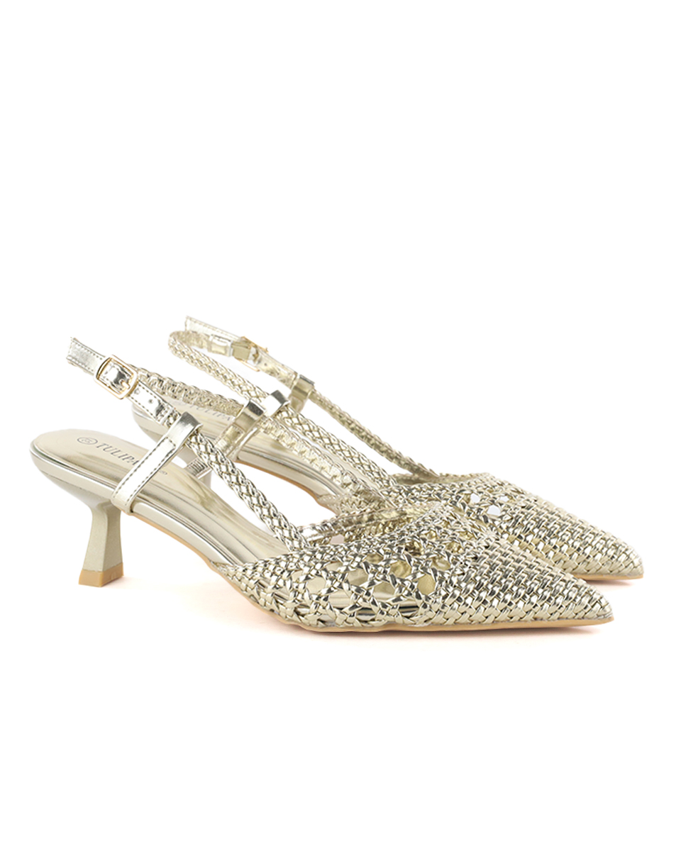 Γόβες Μυτερές με Πλεκτό Σχέδιο – Χρυσό
