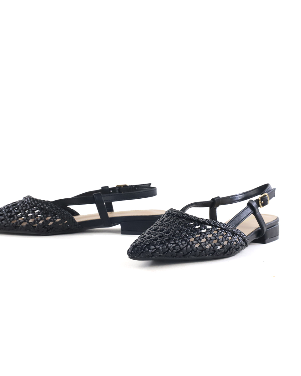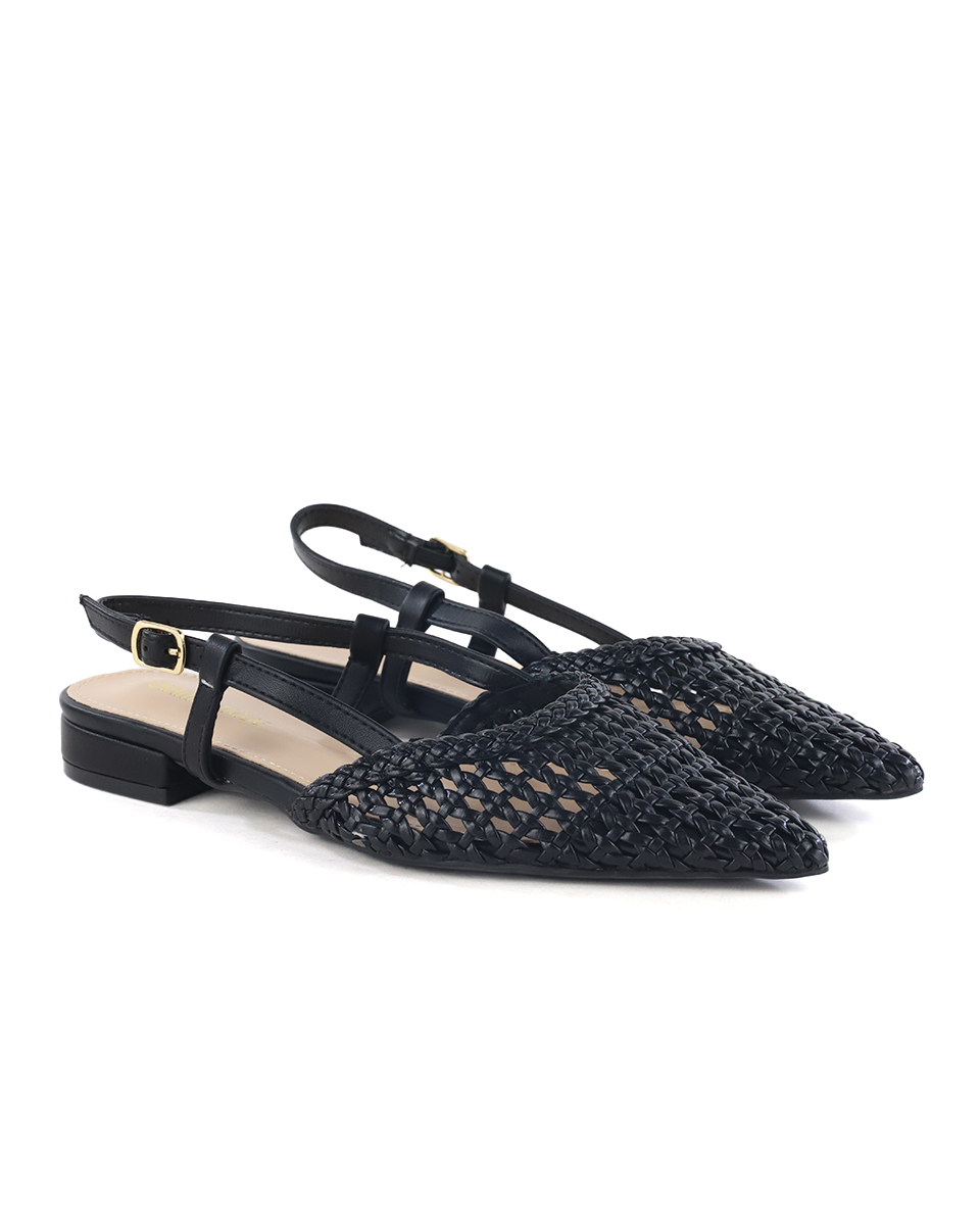 Γοβάκια Slingback Μυτερά με Πλεκτό Σχέδιο – Μαύρο
